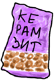 Керамзит. Подойдёт любая фирма, покупаем средней фракции 0,5-0,7 мм. Ну, или какой будет)